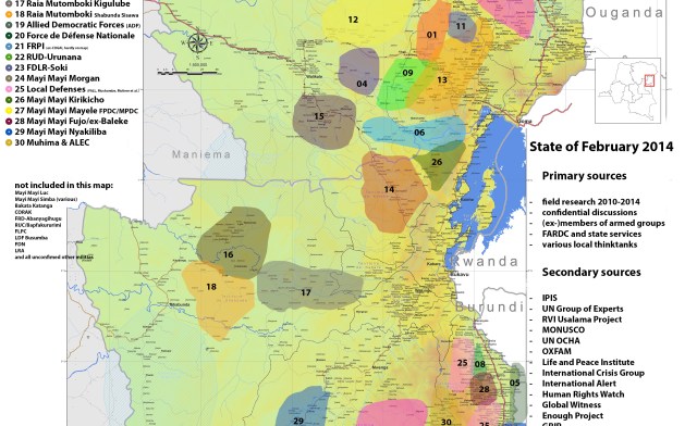 It includes recent developments in between the reference date of the first edition (October 2013) and the second one (February 2014) as well as refinements due to improved information and more thorough crosschecks. Most notable changes include the demise of M23 and the dislodging of ADF, as well as a few shifts in Masisi, Shabunda, Uvira, and Fizi.
